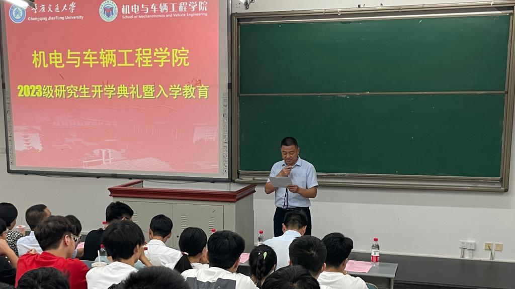 开学典礼上,院党委陈作明书记首先发表了热情洋溢的欢迎辞,对2023级221名乘风破浪、披荆斩棘考上重庆交通大学的研究生表达了祝贺,并寄语同学们尽快实现角色转换,开启研究生的新征程,在机电这个大家庭中不负韶华、谱写新篇章。